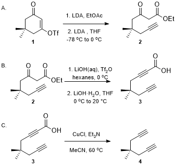 Figure 21. Synthesis of neopentylene-tethered 1,6 diynes from dimedone