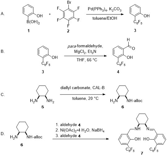 DCM (ACS grade) used in step D were purchased from VWR and Fisher Chemical, respectively, and used as received. Solvents for work-ups and purifications were obtained in ACS grade and used as received.