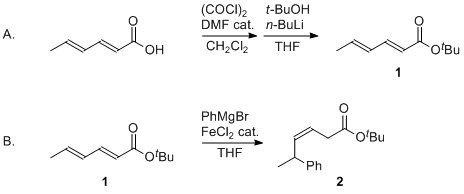 Iron-Catalyzed Selective Conjugate Addition of Aryl Grignard Reagents to 2,4-Alkadienoates: tert-Butyl (Z)-5-Phenyl-3-hexenoate