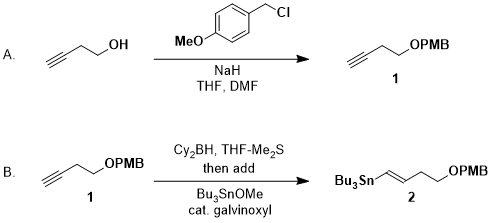 To demonstrate the Hoshi method, we chose as our substrate the PMB ether derivative of 3-butynol. The detailed procedure described in this article represents the first experimental procedure to appear in