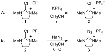 Synthesis of 2-Azido-1,3-dimethylimidazolinium Hexafluorophosphate (ADMP).