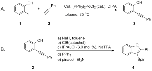 The outlined procedure results in the formation of 3-borylated benzofuran derivatives (Table 1). Beginning with 2-alkynylphenols (