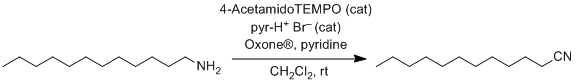 14. The oxidation of the amine substrate to the corresponding nitrile is quite rapid and is completed usually within 1 h of addition. However, due to the requirement to use an excess of an external base,