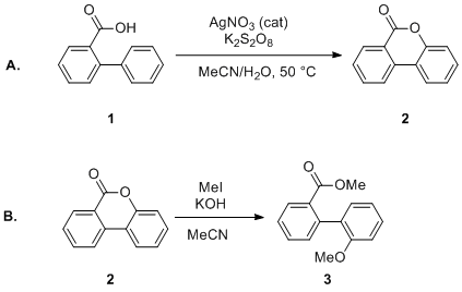 H-benzo[c]chromen-6-ones. The Thomson group reported a method to convert biaryl-2-carboxylic acid's silver salts into the corresponding 6