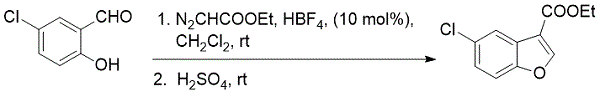 Wang and coworkers reported the formation of 3-ethoxycarbonyl benzofuran in 81% yield from (