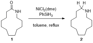 Facile Reduction of Amides Using Nickel Catalysis: Reduction of 12-Aminododecanolactam
