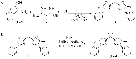 Synthesis of Chiral Bisoxazoline Ligands: (3aR,3a'R,8aS,8a'S)-2,2'-(cyclopropane-1,1-diyl)bis(3a,8a-dihydro-8H-indeno[1,2-d]oxazole)