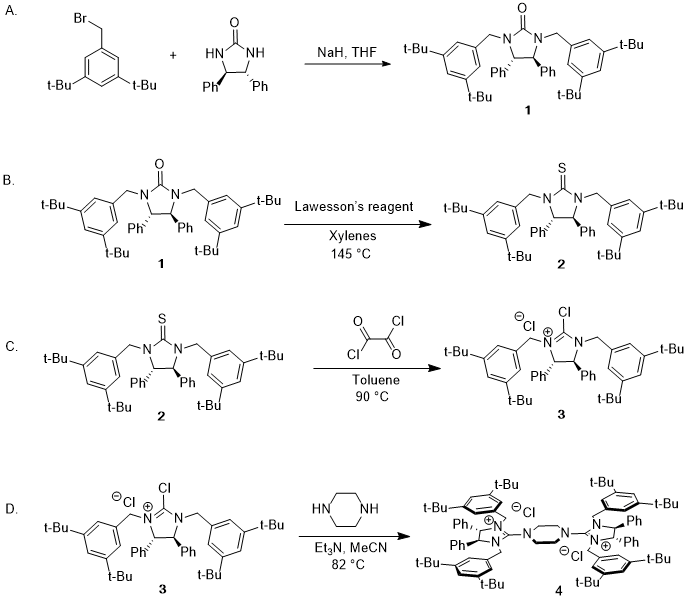 Preparation of Asymmetric Phase-transfer Catalyst, 1,4-Bis((4S,5S)-1,3-bis(3,5-di-tert-butylbenzyl)-4,5-diphenylimidazolidin-2-ylidene)piperazine-1,4-diium chloride
