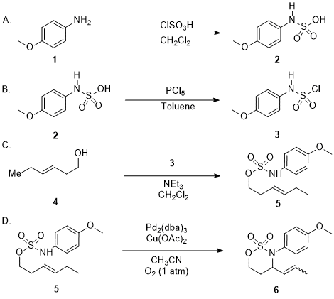 (E)-hex-3-en-1-yl (4-methoxyphenyl)sulfamate (5) (2.85 g, 10 mmol, 1 equiv),