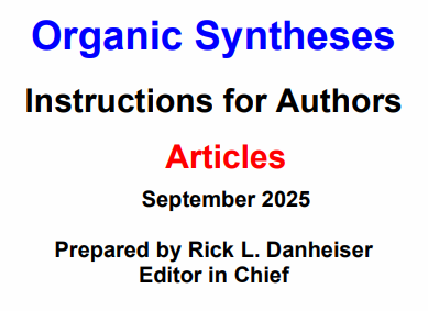 Even with these more detailed procedures, the experience of Organic Syntheses editors is that difficulties often arise in obtaining the results and yields reported by the submitters of procedures. To expedite the checking process and ensure success, we have prepared the following "Instructions for Authors" as well as a