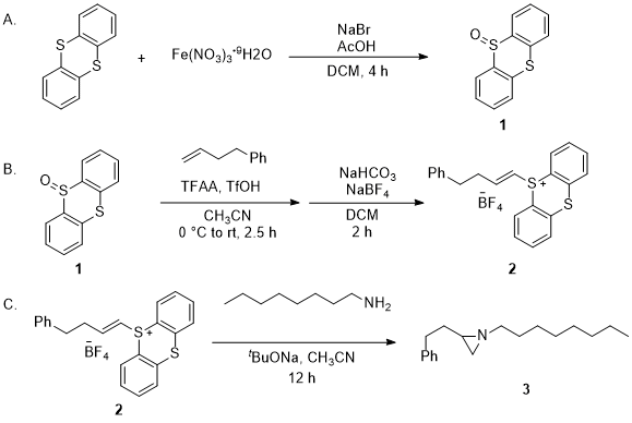 octylamine and thianthrenium salts is very important for this aziridination. The absence of premixing led to a low yield of this aziridination reaction. After 5 min, precipitation is occasionally observed.