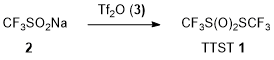 As mentioned below, TTST is a powerful electrophilic CF3S+ reagent. In addition, TTST can provide two equimolar nucleophilic CF3S- anions species and both CF3S• and CF3• radical species depending on the reaction conditions. Thus, TTST is highly versatile and atom-economical.